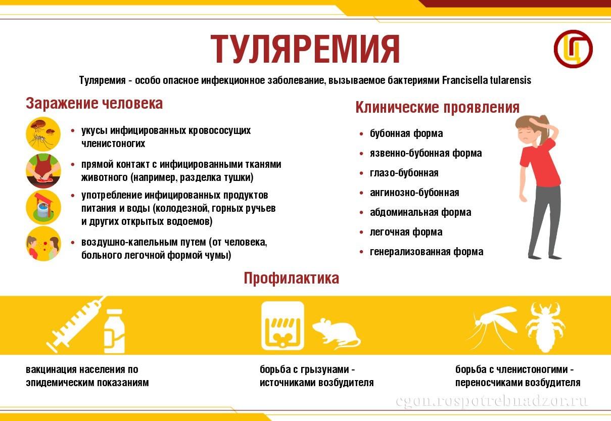Туляремия очень заразна: восприимчивость людей к ней составляет почти 100%. В этой связи туляремию иногда называют «малой чумой» и относят к особо опасным инфекциям.
